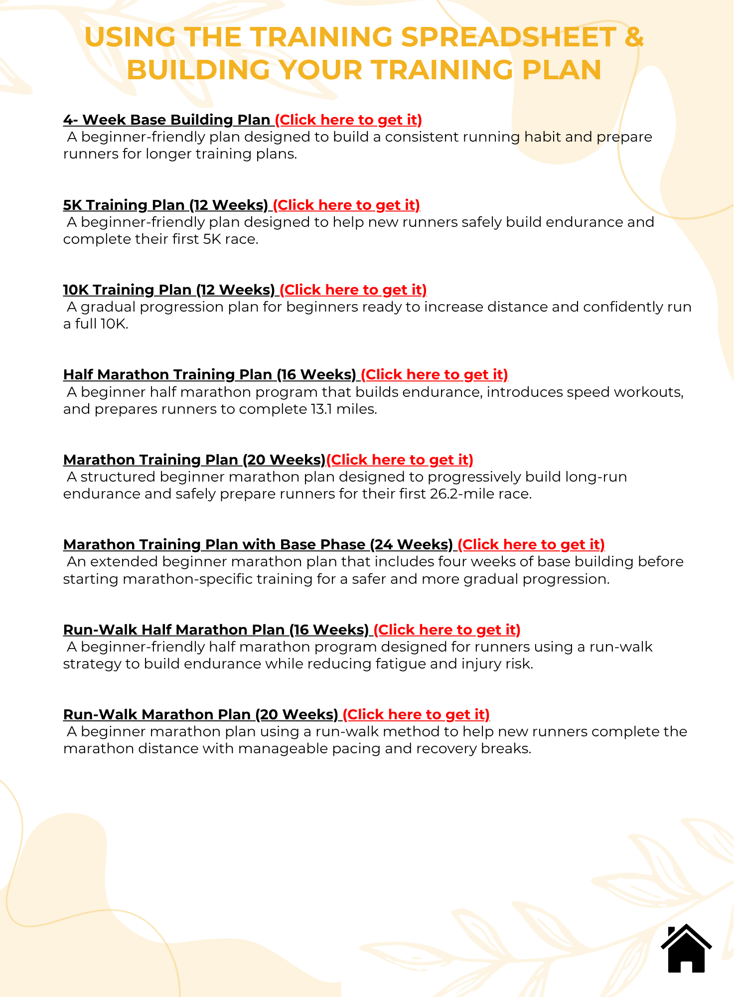 This guide also includes access to multiple beginner-friendly training plans designed to help you progress safely from building a running habit all the way to completing a marathon.