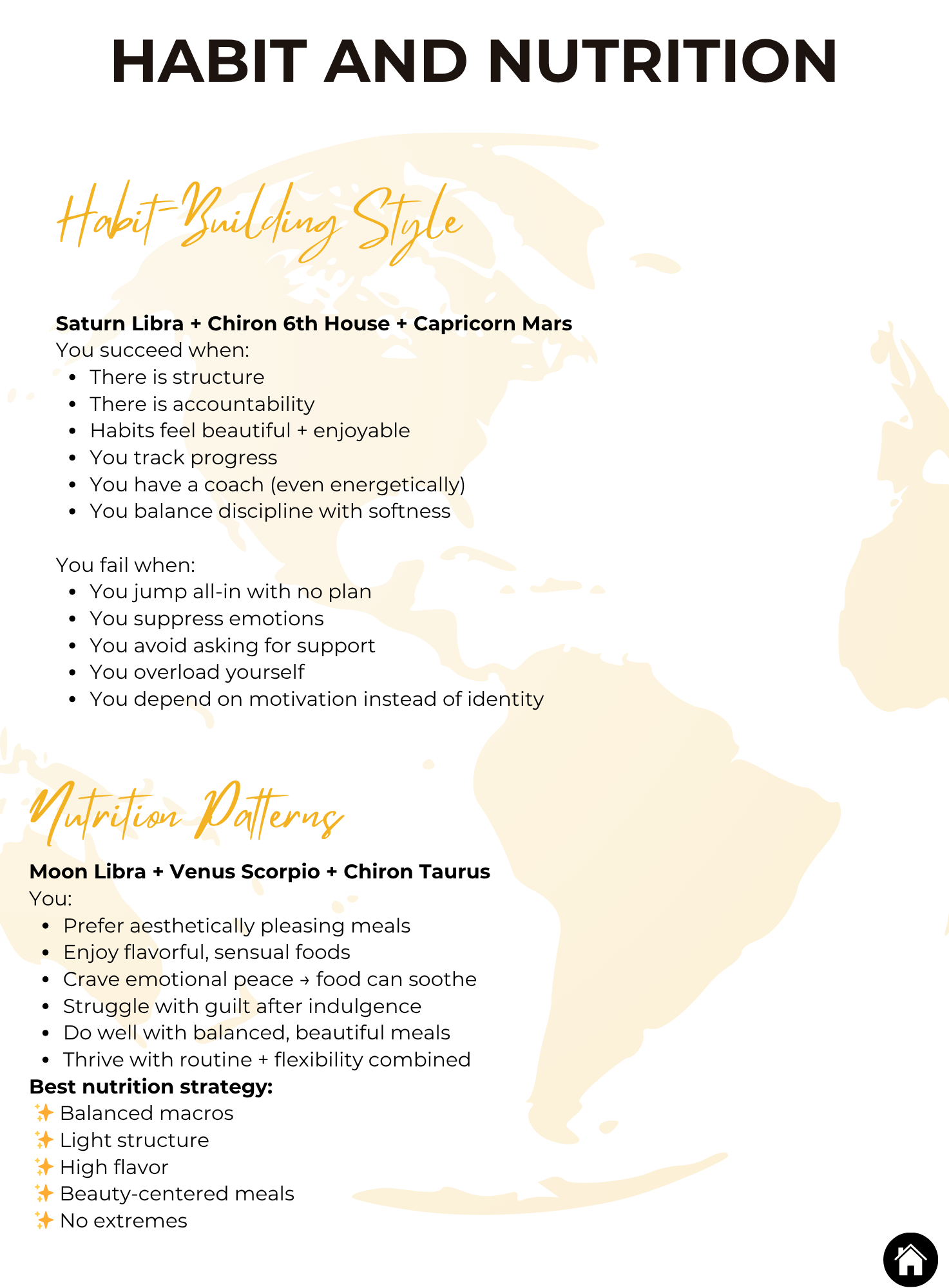This report combines astrology, identity work, and behavior science to help you understand why your health patterns happen and what works best for you.
